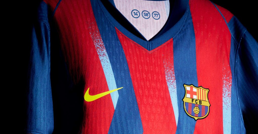 Déjà dévoilé officieusement par Footy Headlines il y a quelques jours, le FC Barcelone a présenté mercredi son quatrième maillot pour la saison 2025-2026, rendant hommage à l’histoire et à l’art. Cette nouvelle tenue du club catalan s’inspire d’un Clásico emblématique : la victoire 3-0 au stade Santiago Bernabéu, le 19 novembre 2005. Une rencontre marquée par la performance exceptionnelle de Ronaldinho, auteur de deux buts mémorables et ovationné par le public madrilène.