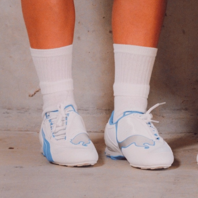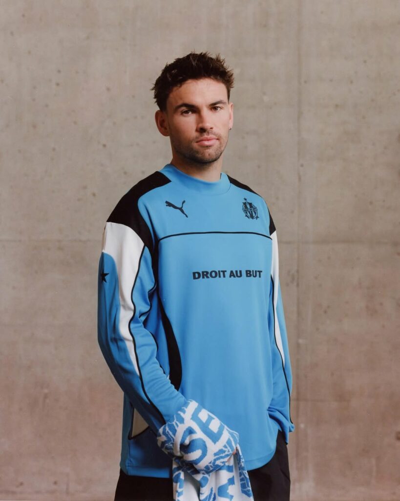 Parmi les pièces, on retrouve notamment une paire de sneakers, la PUMA V-S1. Ce modèle revisite l’esprit de l’emblématique PUMA V1.08, avec des lignes épurées et des touches métalliques. La collection inclut également un pull à manches longues au style résolument vintage, doté d’une coupe ample et habillé du bleu iconique de l’Olympique de Marseille.